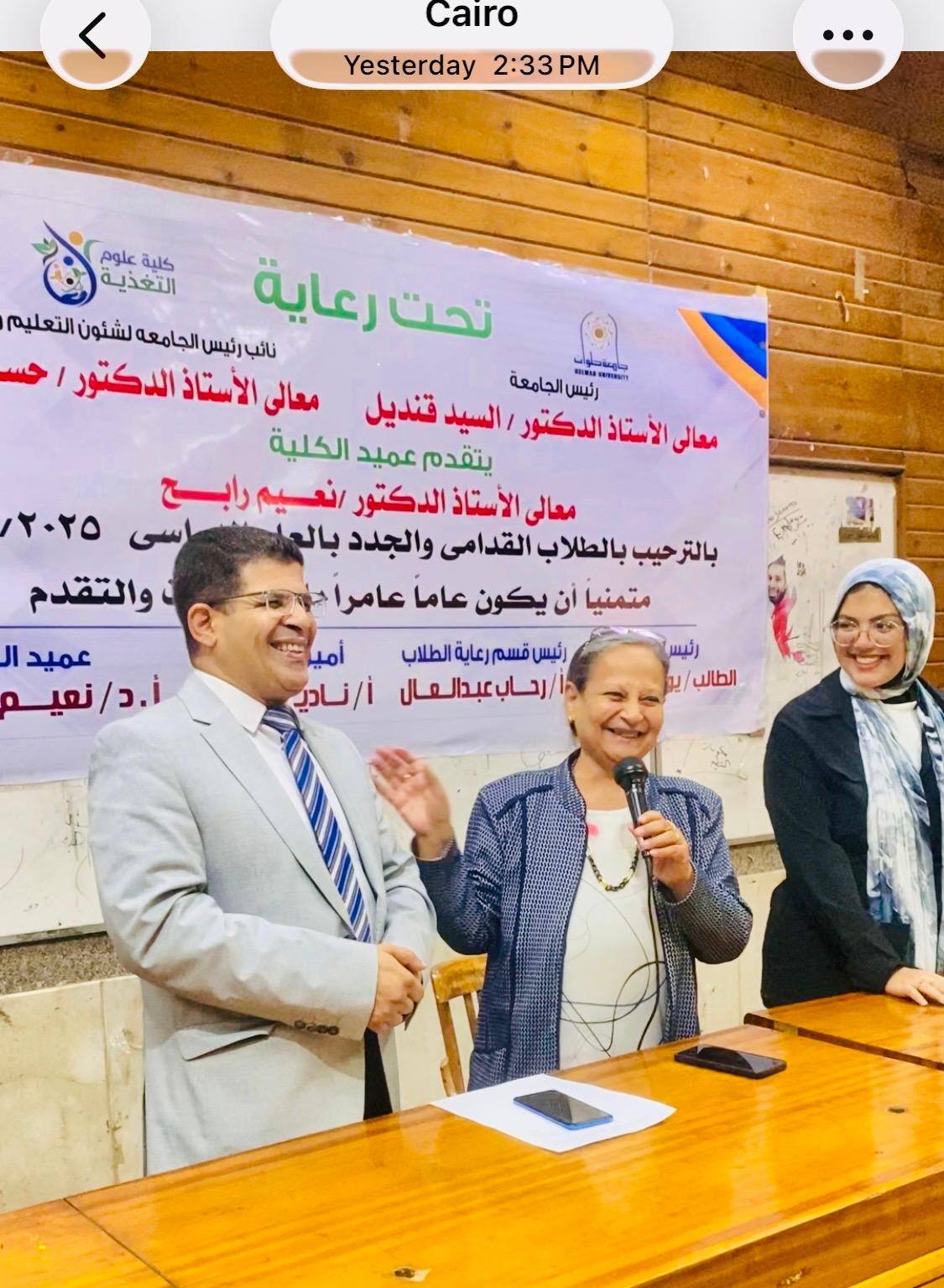 حفل استقبال الطلاب الجدد بكلية علوم التغذية- جامعة حلوان للعام الجامعي ٢٠٢٥/ ٢٠٢٦