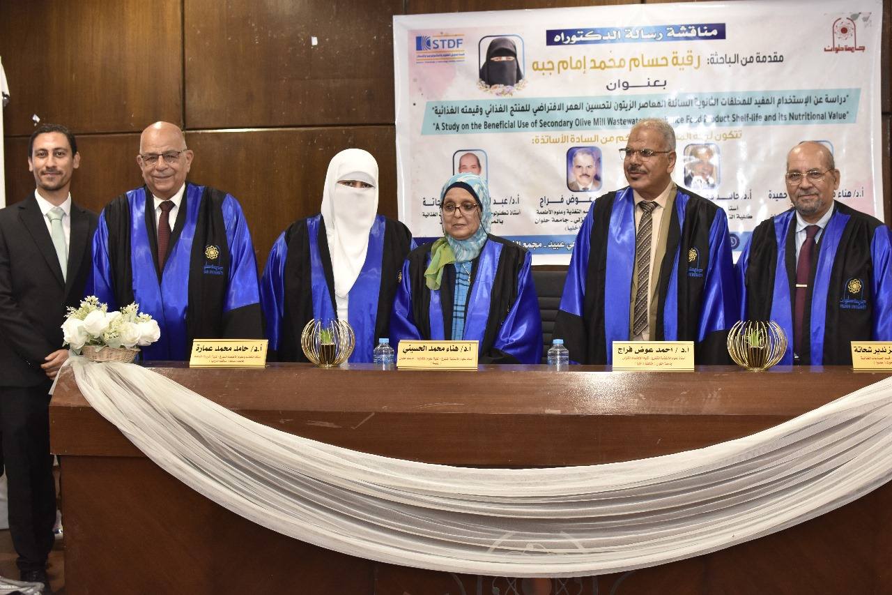 رسالة دكتوراه بعنوان "دراسة عن الإستخدام المفيد للمخلفات السائلة لمعاصر الزيتون لتحسين العمر الافتراضي للمنتج الغذائي وقيمته الغذائية